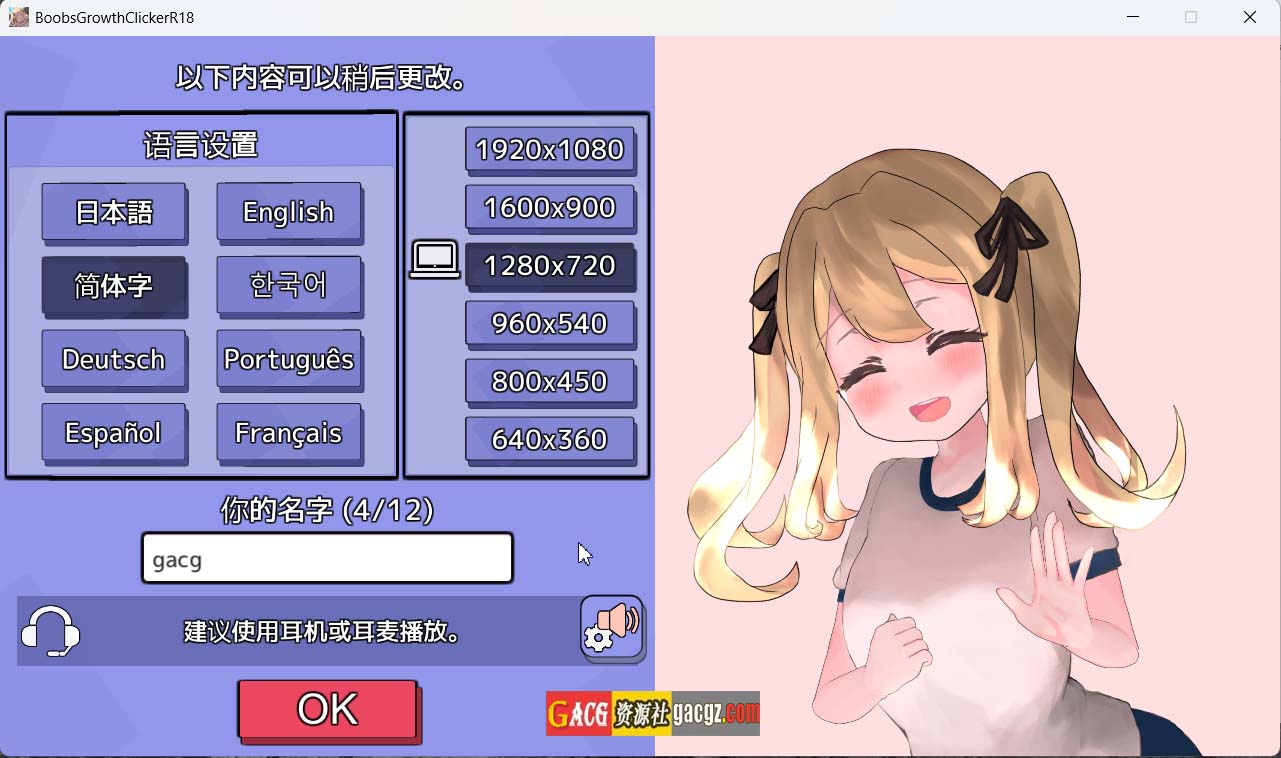推荐使用耳机或头戴式设备进行游玩。