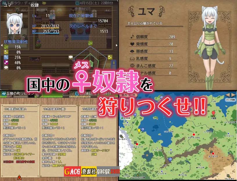 他先是购买了一位猫耳少女尤玛作为助手,为了满足寻求奴隶的人们的委托,开始周游王国。