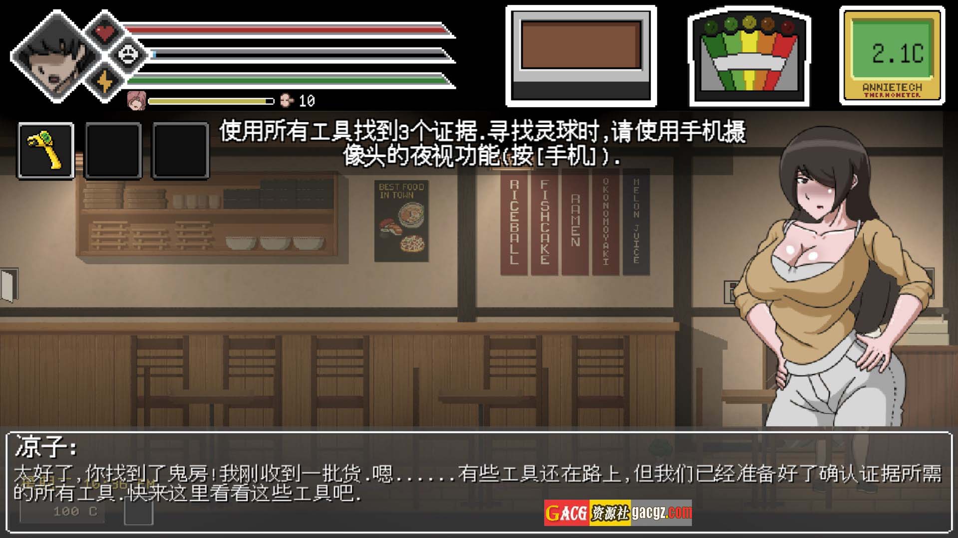 使用温度计找到鬼屋,然后使用证据工具和观察行为来识别鬼魂。