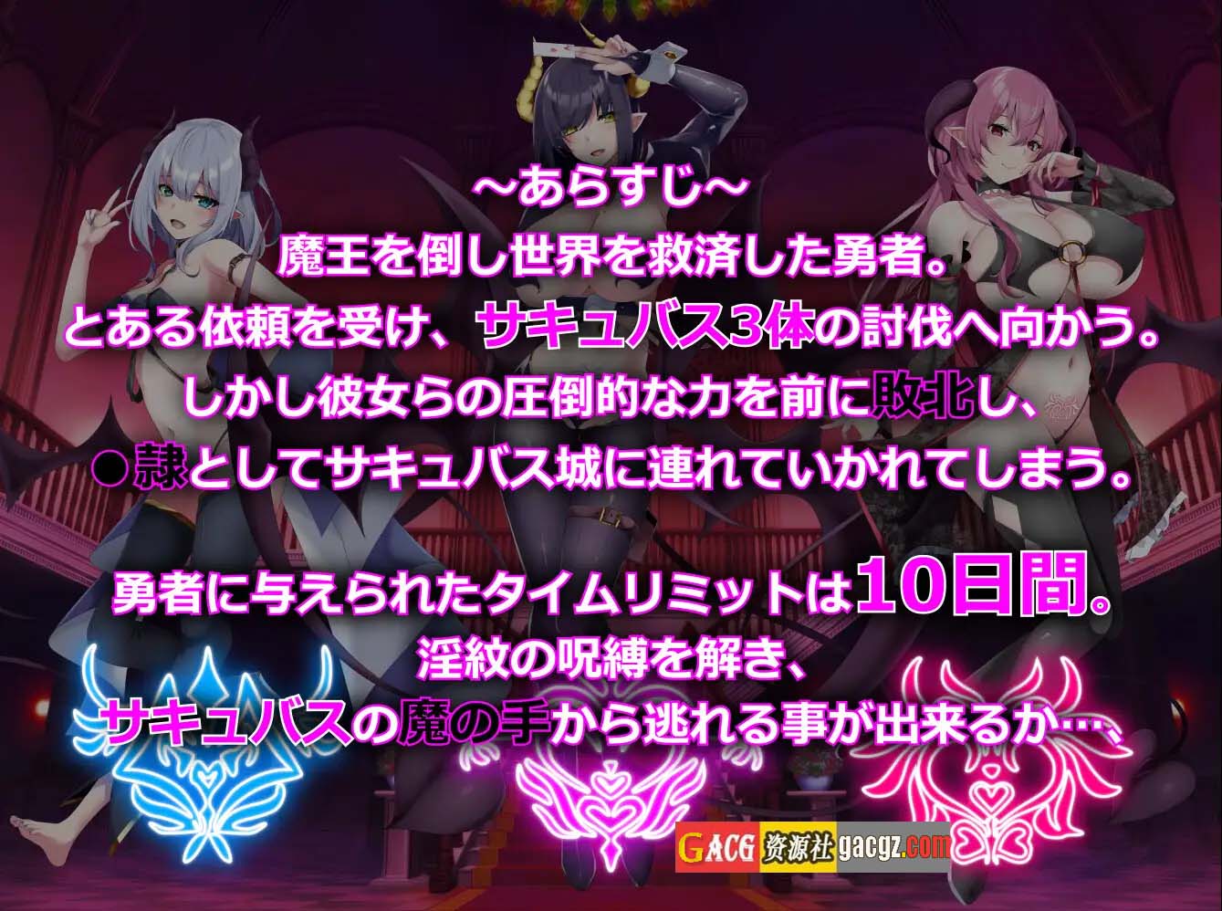 这是一款老虎机游戏,玩家扮演一位沦为魅魔〇隶的勇者,必须在淫纹被完全刻印之前的10天内,设法从魅魔城中逃脱。