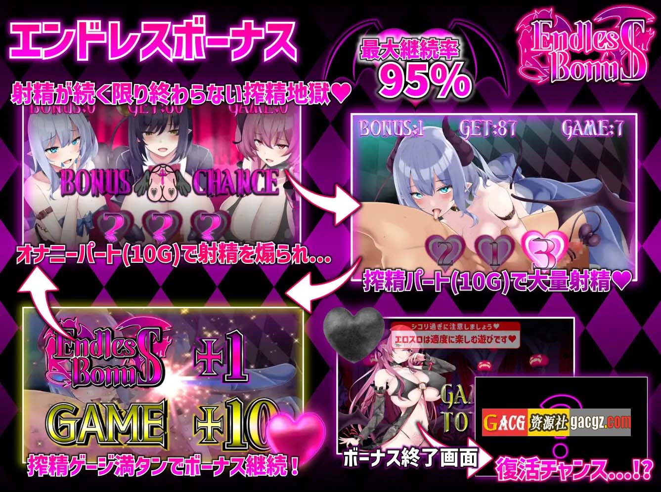 通过5种游戏模式和多种多样的演出,你会被魅魔们榨取到满满的精华‼️