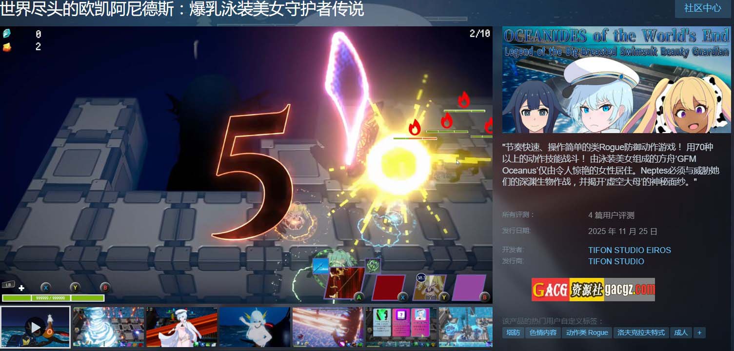 操作简单、节奏快的防御战斗!居住在方舟「海上机动都市GFM奥凯亚诺斯」的只有穿泳装的爆乳美少女。