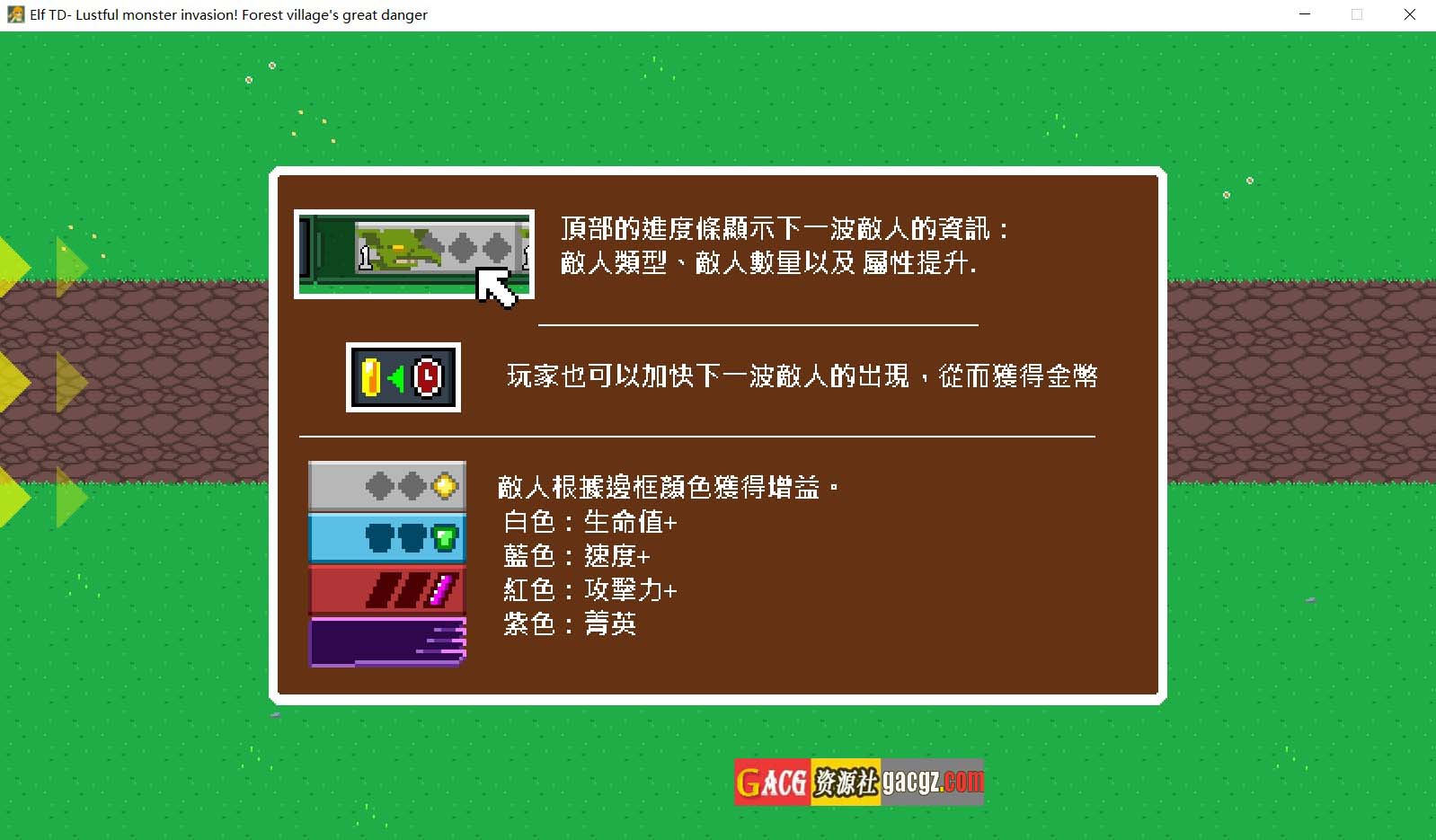 传统的幻想塔防游戏。使用金币来配置和强化精灵,保护她们的故乡免受淫邪魔物的侵害。